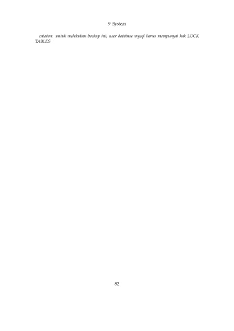 9 System catatan: untuk melakukan backup ini, user database mysql harus mempunyai hak LOCK TABLES 82