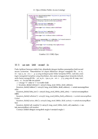$custom_fields[’collation’] = array(0, lang_mod_biblio_field_collation); –> untuk menampilkan