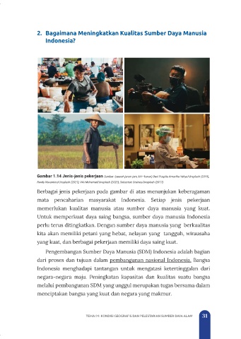 Gambar 1.14 Jenis-jenis pekerjaan Sumber: (searah jarum jam, kiri—kanan) Devi Puspita Amartha Yahya/Unsplash (2019),
