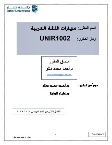 1 %u0625%u0639%u062f%u0627%u062f: %u062f. %u0623%u062d%u0645%u062f %u0645%u062d%u0645%u062f %u062f%u0644%u0644%u0648 %u0645%u062f%u0631%u0651%u0633%u0648 %u0627%u0644%u0645%u0642%u0631%u0631: %u062f.%u0623%u062d%u0645%u062f %u0645%u062d%u0645%u062f %u062f%u0644%u0644%u0648 %u062f. %u0639%u0644%u064a%u0627%u0621 %u0627%u0644%u062f%u0627%u064a%u0629 %u0645%u0646 %u0651%u0633%u0642 %u0627%u0644%u0645%u0642%u0631%u0631%u062f.%u0623%u062d%u0645%u062f %u0645%u062d%u0645%u062f %u062f%u0644%u0644%u0648admuhammad@su.edu.om%u0627%u0644%u0641%u0635%u0644 %u0627%u0644%u062b%u0627%u0646%u064a %u0645%u0646 %u0627%u0644%u0639%u0627%u0645 %u0627%u0644%u062f%u0631%u0627%u0633%u064a 2024-2025%u0627%u0633%u0645 %u0627%u0644%u0645%u0642%u0631%u0631: %u0631%u0645%u0632 %u0627%u0644%u0645%u0642%u0631%u0631: UNIR1002Su.edu.om