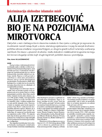 Kao izgrađeni intelektualac koji je dru- članova 114. i 133. Krivičnog zakona SFRJ tekst prilikom pretresa kod Izetbegovića