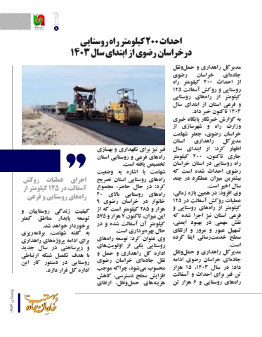 %u0632%u0645%u0633%u062a%u0627%u0646 1403%u0627%u062f%u0627%u0631%u0647%u200c%u06a9%u0640%u0640%u0640%u0640%u0640%u0640%u0640%u0640%u0640%u0640%u0644%u0627%u062e%u0640%u0640%u0640%u0640%u0640%u0640%u0640%u0628%u0640%u0640%u0640%u0640%u0640%u0640%u0640%u0640%u0640%u0627%u063111%u0645%u062f%u06cc%u0631%u06a9%u0644 %u0631%u0627%u0647%u062f%u0627%u0631%u06cc %u0648 %u062d%u0645%u0644%u0648%u0646%u0642%u0644 %u062c%u0627%u062f%u0647%u0627%u06cc %u062e%u0631%u0627%u0633%u0627%u0646 %u0631%u0636%u0648%u06cc %u0627%u0632 %u0627%u062d%u062f%u0627%u062b %u06f2%u06f0%u06f0 %u06a9%u06cc%u0644%u0648%u0645%u062a%u0631 %u0631%u0627%u0647 %u0631%u0648%u0633%u062a%u0627%u06cc%u06cc %u0648 %u0631%u0648%u06a9%u0634 %u0622%u0633%u0641%u0627%u0644%u062a %u06f1%u06f2%u06f5%u06a9%u06cc%u0644%u0648%u0645%u062a%u0631 %u0627%u0632 %u0631%u0627%u0647%u0647%u0627%u06cc %u0631%u0648%u0633%u062a%u0627%u06cc%u06cc %u0648 %u0641%u0631%u0639%u06cc %u0627%u0633%u062a%u0627%u0646 %u0627%u0632 %u0627%u0628%u062a%u062f%u0627%u06cc %u0633%u0627%u0644 %u06f1%u06f4%u06f0%u06f3 %u062a%u0627%u06a9%u0646%u0648%u0646 %u062e%u0628%u0631 %u062f%u0627%u062f.%u0628%u0647 %u06af%u0632%u0627%u0631%u0634 %u062e%u0628%u0631%u0646%u06af%u0627%u0631 %u067e%u0627%u06cc%u06af%u0627%u0647 %u062e%u0628%u0631%u06cc %u0648%u0632%u0627%u0631%u062a %u0631%u0627%u0647 %u0648 %u0634%u0647%u0631%u0633%u0627%u0632%u06cc %u0627%u0632 %u062e%u0631%u0627%u0633%u0627%u0646 %u0631%u0636%u0648%u06cc%u060c %u062c%u0639%u0641%u0631 %u0634%u0647%u0627%u0645%u062a %u0645%u062f%u06cc%u0631%u06a9%u0644 %u0631%u0627%u0647%u062f%u0627%u0631%u06cc %u0627%u0633%u062a%u0627%u0646 %u0627%u0638%u0647%u0627%u0631 %u06a9%u0631%u062f: %u0627%u0632 %u0627%u0628%u062a%u062f%u0627%u06cc %u0633%u0627%u0644 %u062c%u0627%u0631%u06cc %u062a%u0627%u06a9%u0646%u0648%u0646%u060c %u06f2%u06f0%u06f0 %u06a9%u06cc%u0644%u0648%u0645%u062a%u0631 %u0631%u0627%u0647 %u0631%u0648%u0633%u062a%u0627%u06cc%u06cc %u062f%u0631 %u0627%u0633%u062a%u0627%u0646 %u062e%u0631%u0627%u0633%u0627%u0646 %u0631%u0636%u0648%u06cc %u0627%u062d%u062f%u0627%u062b %u0634%u062f%u0647 %u0627%u0633%u062a %u06a9%u0647 %u0628%u06cc%u0634%u062a%u0631%u06cc%u0646 %u0645%u06cc%u0632%u0627%u0646 %u0639%u0645%u0644%u06a9%u0631%u062f %u062f%u0631 %u0686%u0646%u062f %u0633%u0627%u0644 %u0627%u062e%u06cc%u0631 %u0627%u0633%u062a.%u0648%u06cc %u0627%u0641%u0632%u0648%u062f: %u062f%u0631 %u0647%u0645%u06cc%u0646 %u0628%u0627%u0632%u0647 %u0632%u0645%u0627%u0646%u06cc%u060c %u0639%u0645%u0644%u06cc%u0627%u062a %u0631%u0648%u06a9%u0634 %u0622%u0633%u0641%u0627%u0644%u062a %u062f%u0631 %u06f1%u06f2%u06f5%u06a9%u06cc%u0644%u0648%u0645%u062a%u0631 %u0627%u0632 %u0631%u0627%u0647%u0647%u0627%u06cc %u0631%u0648%u0633%u062a%u0627%u06cc%u06cc %u0648 %u0641%u0631%u0639%u06cc %u0627%u0633%u062a%u0627%u0646 %u0646%u06cc%u0632 %u0627%u062c%u0631%u0627 %u0634%u062f%u0647 %u06a9%u0647 %u0646%u0642%u0634 %u0645%u0647%u0645%u06cc %u062f%u0631 %u0628%u0647%u0628%u0648%u062f %u0627%u06cc%u0645%u0646%u06cc%u060c %u062a%u0633%u0647%u06cc%u0644 %u0639%u0628%u0648%u0631 %u0648 %u0645%u0631%u0648%u0631 %u0648 %u0627%u0631%u062a%u0642%u0627%u06cc %u0633%u0637%u062d %u062e%u062f%u0645%u062a%u0631%u0633%u0627%u0646%u06cc %u0627%u06cc%u0641%u0627 %u06a9%u0631%u062f%u0647 %u0627%u0633%u062a.%u0645%u062f%u06cc%u0631%u06a9%u0644 %u0631%u0627%u0647%u062f%u0627%u0631%u06cc %u0648 %u062d%u0645%u0644%u0648%u0646%u0642%u0644 %u062c%u0627%u062f%u0647%u0627%u06cc %u062e%u0631%u0627%u0633%u0627%u0646 %u0631%u0636%u0648%u06cc %u0627%u062f%u0627%u0645%u0647 %u062f%u0627%u062f: %u062f%u0631 %u0633%u0627%u0644 %u06f1%u06f4%u06f0%u06f3 %u060c%u06f1%u06f5 %u0647%u0632%u0627%u0631 %u062a%u0646 %u0642%u06cc%u0631 %u0628%u0631%u0627%u06cc %u0627%u062d%u062f%u0627%u062b %u0648 %u0622%u0633%u0641%u0627%u0644%u062a %u0631%u0627%u0647%u0647%u0627%u06cc %u0631%u0648%u0633%u062a%u0627%u06cc%u06cc %u0648 %u06f6 %u0647%u0632%u0627%u0631 %u062a%u0646 %u0642%u06cc%u0631 %u0646%u06cc%u0632 %u0628%u0631%u0627%u06cc %u0646%u06af%u0647%u062f%u0627%u0631%u06cc %u0648 %u0628%u0647%u0633%u0627%u0632%u06cc %u0631%u0627%u0647%u0647%u0627%u06cc %u0641%u0631%u0639%u06cc %u0648 %u0631%u0648%u0633%u062a%u0627%u06cc%u06cc %u0627%u0633%u062a%u0627%u0646 %u062a%u062e%u0635%u06cc%u0635 %u06cc%u0627%u0641%u062a%u0647 %u0627%u0633%u062a.%u0634%u0647%u0627%u0645%u062a %u0628%u0627 %u0627%u0634%u0627%u0631%u0647 %u0628%u0647 %u0648%u0636%u0639%u06cc%u062a %u0631%u0627%u0647%u0647%u0627%u06cc %u0631%u0648%u0633%u062a%u0627%u06cc%u06cc %u0627%u0633%u062a%u0627%u0646 %u062a%u0635%u0631%u06cc%u062d %u06a9%u0631%u062f: %u062f%u0631 %u062d%u0627%u0644 %u062d%u0627%u0636%u0631%u060c %u0645%u062c%u0645%u0648%u0639 %u0631%u0627%u0647%u0647%u0627%u06cc %u0631%u0648%u0633%u062a%u0627%u06cc%u06cc %u0628%u0627%u0627%u0644%u06cc %u06f2%u06f0%u062e%u0627%u0646%u0648%u0627%u0631 %u062f%u0631 %u062e%u0631%u0627%u0633%u0627%u0646 %u0631%u0636%u0648%u06cc %u06f9%u0647%u0632%u0627%u0631 %u0648 %u06f2%u06f8%u06f5 %u06a9%u06cc%u0644%u0648%u0645%u062a%u0631 %u0627%u0633%u062a %u06a9%u0647 %u0627%u0632 %u0627%u06cc%u0646 %u0645%u06cc%u0632%u0627%u0646%u060c %u062a%u0627%u06a9%u0646%u0648%u0646 %u06f7 %u0647%u0632%u0627%u0631 %u0648 %u06f5%u06f7%u06f5%u06a9%u06cc%u0644%u0648%u0645%u062a%u0631 %u0622%u0646 %u0622%u0633%u0641%u0627%u0644%u062a %u0634%u062f%u0647 %u0648 %u062f%u0631 %u062d%u0627%u0644 %u0628%u0647%u0631%u0647%u0628%u0631%u062f%u0627%u0631%u06cc %u0627%u0633%u062a.%u0648%u06cc %u0639%u0646%u0648%u0627%u0646 %u06a9%u0631%u062f: %u062a%u0648%u0633%u0639%u0647 %u0631%u0627%u0647%u0647%u0627%u06cc %u0631%u0648%u0633%u062a%u0627%u06cc%u06cc %u06cc%u06a9%u06cc %u0627%u0632 %u0627%u0648%u0644%u0648%u06cc%u062a%u0647%u0627%u06cc %u0627%u062f%u0627%u0631%u0647 %u06a9%u0644 %u0631%u0627%u0647%u062f%u0627%u0631%u06cc %u0648 %u062d%u0645%u0644 %u0648 %u0646%u0642%u0644 %u062c%u0627%u062f%u0647%u0627%u06cc %u062e%u0631%u0627%u0633%u0627%u0646 %u0631%u0636%u0648%u06cc %u0645%u062d%u0633%u0648%u0628 %u0645%u06cc%u0634%u0648%u062f%u