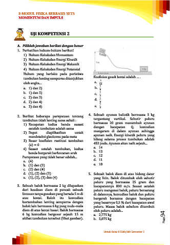 2. Berikut beberapa pernyataan tentang 4. Sebuah ayunan balistik bermassa 3 kg