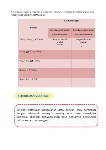 2. Lengkapi tabel pengaruh perubahan tekanan terhadap kesetimbangan dari