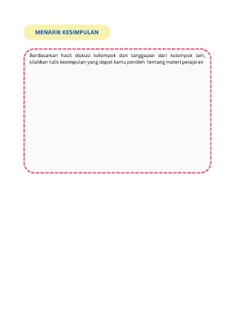 MENARIK KESIMPULAN Berdasarkan hasil diskusi kelompok dan tanggapan dari kelompok lain, silahkan tulis kesimpulan yang dapat kamu peroleh tentang materi pelajaran