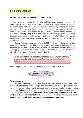 Chatelier, bahwa apabila suhu dinaikkan maka reaksi akan bergeser ke arah reaksi