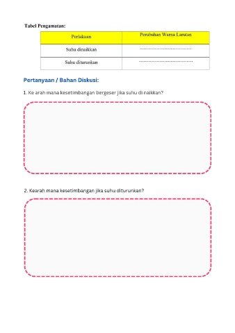 2. Kearah mana kesetimbangan jika suhu diturunkan?