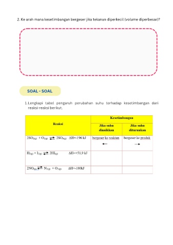 2. Ke arah mana kesetimbangan bergeser jika tekanan diperkecil (volume diperbesar)?