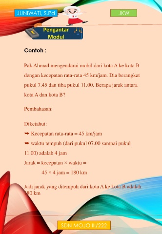 dengan kecepatan rata-rata 45 km/jam. Dia berangkat