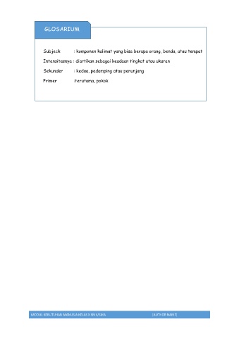Subjeck : komponen kalimat yang bisa berupa orang, benda, atau tempat