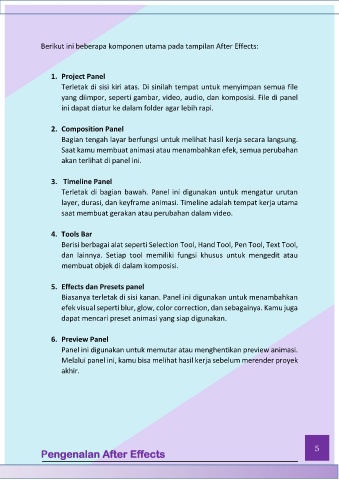 Berikut ini beberapa komponen utama pada tampilan After Effects: