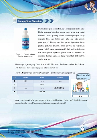 Tabel 1.1 Identifikasi Senyawa Garam dari Hasil Reaksi Asam dengan Basa