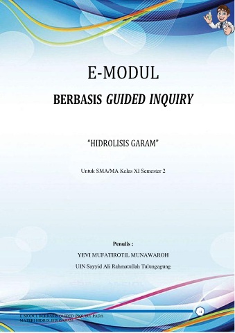 E-MODUL BERBASIS GUIDED INQUIRY “HIDROLISIS GARAM” Untuk SMA/MA Kelas XI Semester 2 Penulis : YEVI MUFATIROTIL MUNAWAROH UIN Sayyid Ali Rahmatullah Tulungagung ii E-MODUL BERBASIS GUIDED INQUIRY PADA MATERI HIDROLISIS GARAM