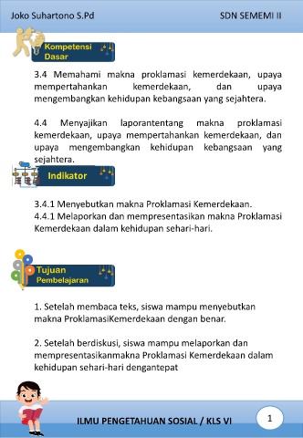 3.4 Memahami makna proklamasi kemerdekaan, upaya
