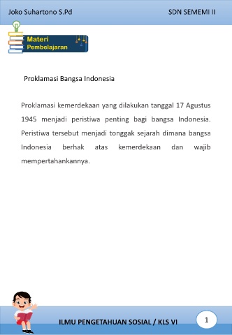 ILMU PENGETAHUAN SOSIAL / KLS VI 1