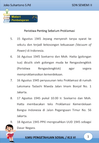 ILMU PENGETAHUAN SOSIAL / KLS VI 1