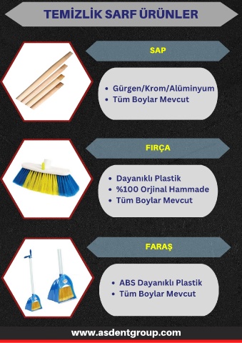 TEMİZLİK SARF ÜRÜNLER SAP Gürgen/Krom/Alüminyum Tüm Boylar Mevcut FIRÇA Dayanıklı Plastik %100 Orjinal Hammade Tüm Boylar Mevcut FARAŞ ABS Dayanıklı Plastik Tüm Boylar Mevcut www.asdentgroup.com