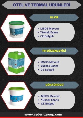 OTEL VE TERMAL ÜRÜNLERİ KLOR MSDS Mevcut Yüksek Esans CE Belgeli PH DÜZENLEYİCİ MSDS Mevcut Yüksek Esans CE Belgeli ÇÖKTÜRÜCÜ MSDS Mevcut Yüksek Esans CE Belgeli www.asdentgroup.com