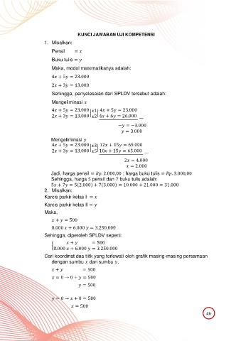 Sehingga, diperoleh SPLDV seperti: