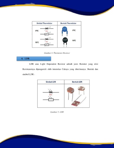 Gambar 4. Thermistor Resistor 4. LDR LDR atau Light Dependent Resistor adalah jenis Resistor yang nilai Resistansinya dipengaruhi oleh intensitas Cahaya yang diterimanya. Bentuk dan simbol LDR : Gambar 5. LDR