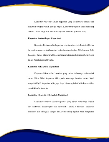 Kapasitor Polyester adalah kapasitor yang isolatornya terbuat dari
