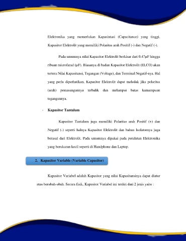 tertera Nilai Kapasitansi, Tegangan (Voltage), dan Terminal Negatif-nya. Hal