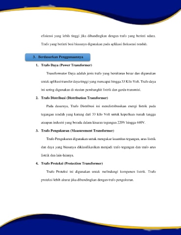 efisiensi yang lebih tinggi jika dibandingkan dengan trafo yang berinti udara.