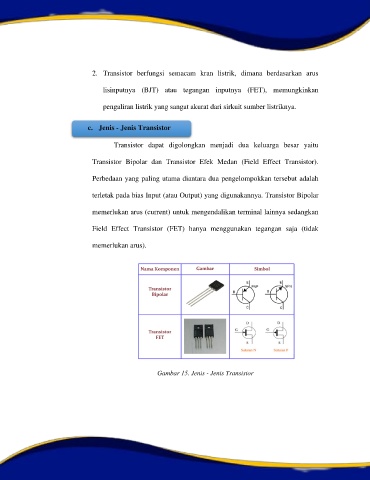 Transistor Bipolar dan Transistor Efek Medan (Field Effect Transistor).