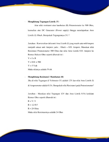 di Amperemeter adalah 0.5A. Berapakah nilai Resistansi pada Potensiometer?