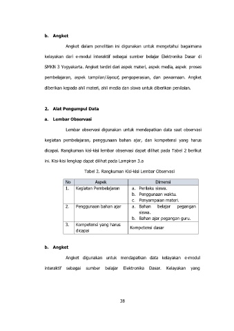 pembelajaran, aspek tampilan/layout, pengoperasian, dan pewarnaan. Angket