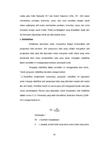 modul pembelajaran. Rumus yang digunakan untuk mengetahui nilai reliabilitas