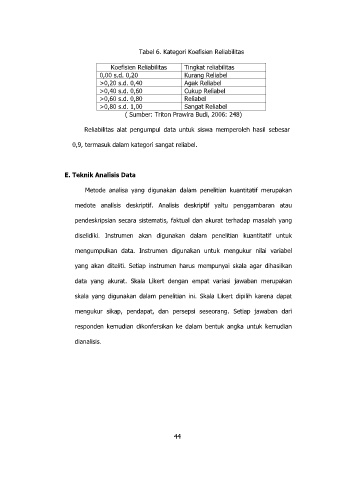 data yang akurat. Skala Likert dengan empat variasi jawaban merupakan