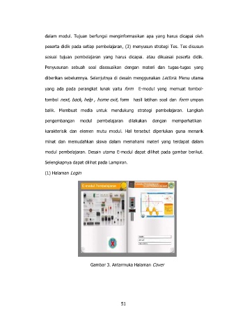 yang ada pada perangkat lunak yaitu form E-modul yang memuat tombol-