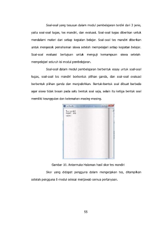yaitu soal-soal tugas, tes mandiri, dan evaluasi. Soal-soal tugas diberikan untuk