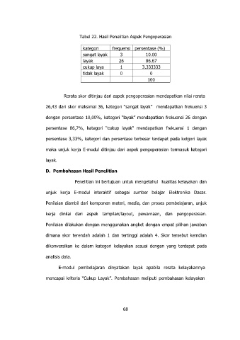 Tabel 22. Hasil Penelitian Aspek Pengoperasian