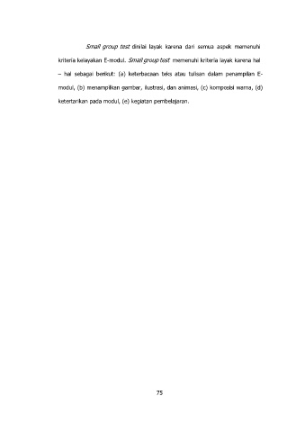 kriteria kelayakan E-modul. Small group test memenuhi kriteria layak karena hal
