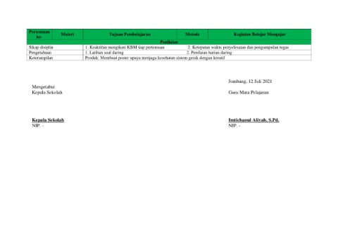 Sikap disiplin 1. Keaktifan mengikuti KBM tiap pertemuan 2. Ketepatan waktu penyelesaian dan pengumpulan tugas