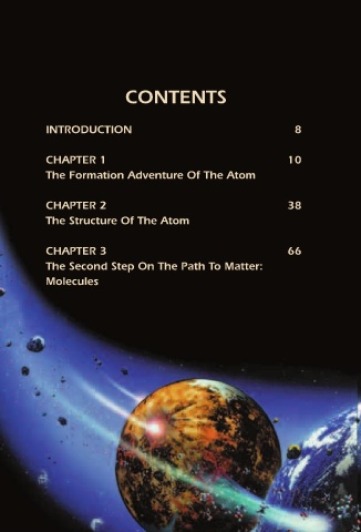 CONTENTS INTRODUCTION 8 CHAPTER 1 10 The Formation Adventure Of The Atom CHAPTER 2 38 The Structure Of The Atom CHAPTER 3 66 The Second Step On The Path To Matter: Molecules