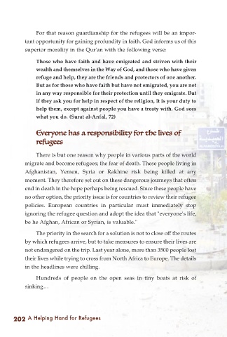 ignoring the refugee question and adopt the idea that "everyone's life,