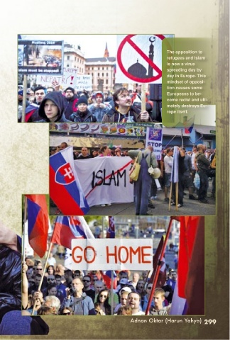 The opposition to refugees and Islam is now a virus spreading day by day in Europe. This mindset of opposi- tion causes some Europeans to be- come racist and ulti- mately destroys Eu- rope itself. Adnan Oktar (Harun Yahya) 299