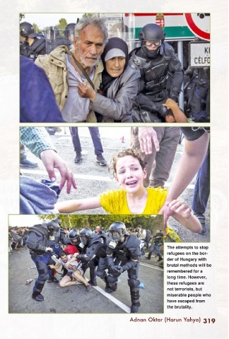 The attempts to stop refugees on the bor- der of Hungary with brutal methods will be remembered for a long time. However, these refugees are not terrorists, but miserable people who have escaped from the brutality. Adnan Oktar (Harun Yahya) 319