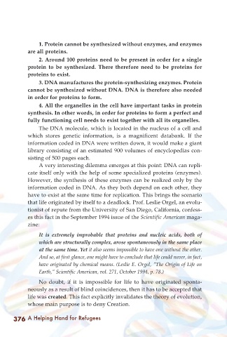 that life originated by itself to a deadlock. Prof. Leslie Orgel, an evolu-