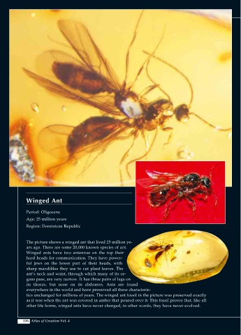 tics unchanged for millions of years. The winged ant fossil in the picture was preserved exactly
