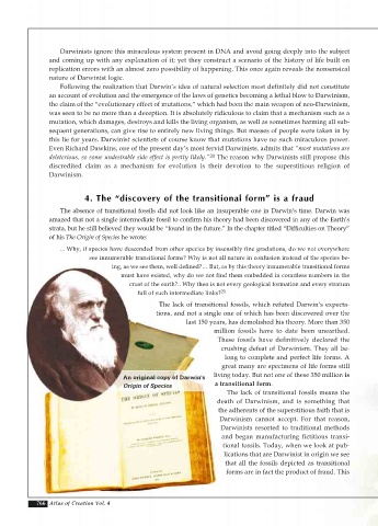 The lack of transitional fossils, which refuted Darwin’s expecta-