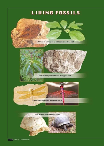 A 54-to-37-million-year-old fossil sassafras leaf A 40-million-year-old fossil diospyros leaf A 125-million-year-old fossil dragonfly A 98-million-year-old fossil turtle 770 Atlas of Creation Vol. 4