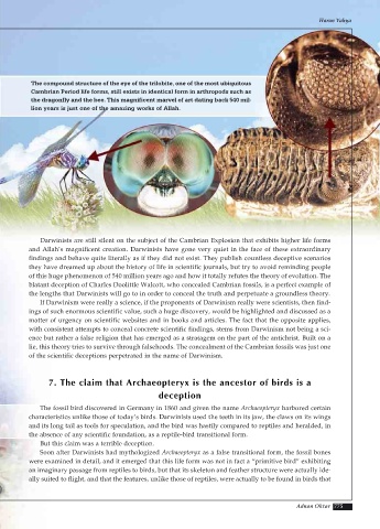 an imaginary passage from reptiles to birds, but that its skeleton and feather structure were actually ide-