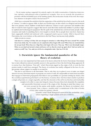 not even account for the amino acids inside a protein, the theory of evolution’s ficti-