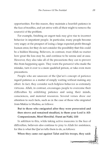 be a hidden blessing. Believers, in contrast, trust Allah no matter