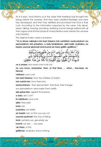 “Ve iz ehaze rabbuka min benî âdama min zuhûrihim zurriyyatahum wa