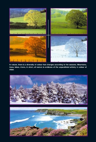 In nature, there is a diversity of colour that changes according to the seasons. Mountains, trees, lakes, rivers, in short, all nature is evidence of the unparalleled artistry in colour of Allah.
